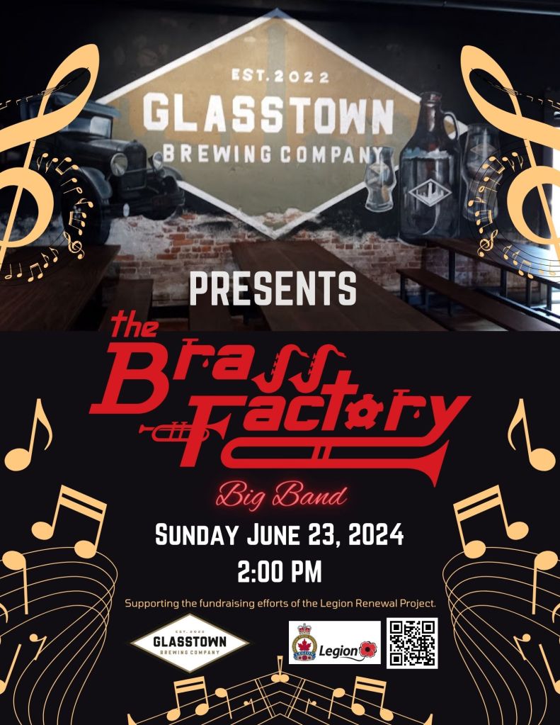 After a l-o-n-g hiatus, the Brass Factory is back, and I haven’t been this pumped in a long time! There is no musical aggregation quite as powerful and versatile as a Big Band, and we’re itching to play for you. For our debut performance we’ve decided to bring our band to the patio of the Glasstown Brewery on Sunday afternoon June 23rd in an effort to bring awareness to the Legion Revitalization Project. We’ll take to the bandstand at 2 pm and we’ve prepped a very eclectic mix of music, all in the big band format. We’ll rock, we’ll swing, we’ll play big band arrangements of songs you know, introduce you to a few you don’t know, play some authentic music from the Big Band era, AND we’re going to introduce you to a couple of fantabulous vocalists! If you’ve never experienced a Big Band live, this is a rare opportunity to catch one in little ol’ Wallaceburg of all places. We hope you can join us, and help spread the word please. ~ Dave ~